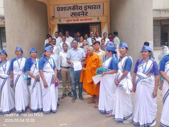 बुध्दगया येथील महाबोधी महाविहार 1949 चा व्यवस्थापन कायद्यामध्ये तात्काळ दुरूस्ती करून महाबोधी महाविहाराचे व्यवस्थापन हे संपूर्ण बौद्धांच्या हाती देण्यात यावे व बुध्दगया महाबोधी महाविहार येथे सुरू असलेल्या महाबोधी महाविहार मुक्ती आंदोलनातील सर्व मागण्या त्वरित मंजूर करण्यात येवून जगभरातील व देशभरातील सर्व बौद्ध बांधवांच्या विचार व आदर करून 1949चा व्यवस्थापन कायदा दुरूस्त करावा व तात्काळ बुध्दगया येथील महाबोधी महाविहार मुक्त करण्यात यावे ही मागणी आज दिनांक 4/3/2025 ला मा. महामहीम राष्ट्रपती भारत सरकार यांना मा. उपविभागीय अधिकारी व मा.तहसिलदार साहेब सावनेर यांच्या मार्फत वंचित बहुजन आघाडी व समता सैनिक दल यांच्या कडून निवेदनाद्वारे देण्यात आली यावेळी पंचशील नगर बौद्ध विहार भंतेजी महाथेरो शिलरक्शितजी व संभाजी ब्रिगेड दिनेश इंगोले , भगवानजी चांदेकर वंचित बहुजन आघाडी पदाधिकारी जिल्हा महासचिव अजय सहारे, जिल्हा सचिव दादाराव लांजेवार , जिल्हा सहसचिव शांतारामजी ढोके, तालुका अध्यक्ष विजय बागडे , सावनेर शहर अध्यक्ष धनेश्वर जी ढोके, महीला आघाडी तालुकाध्यक्ष रत्नमालाताई रागासे, सावनेर शहर अध्यक्ष महीला आघाडी रमाबाई मेश्राम, उपाध्यक्ष रेखाताई बोरकर, कविताताई सुर्यवंशी, लिलाताई बागडे, नंदाताई बागडे, रेखाताई माटे लताबाई कापसे भाऊराव जी लांजेवार,भुजंगराव नारनवरे, मनोजकुमार बागडे, माणिकचंद बंनसोड , अश्विन कापसे,रितेश सुरेश पाटील ,सिल्लोरी समता सैनिक दल महीला राजु बागडे, ललिता, गौरकर एकनाथजी मेश्राम, अमोल डहाट, वैशाली रामटेके, सुनिता गोंडुळे, वैशाली गजभिये, सुनिता गायकवाड,व इतर सर्व मोठ्या संख्येने उपस्थित होते.