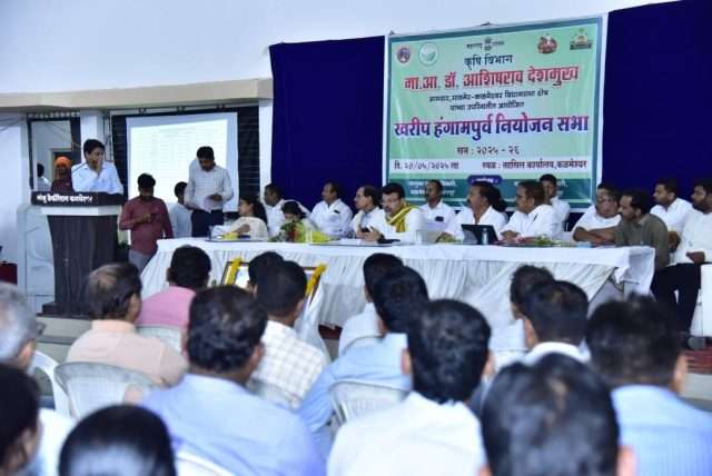 आज पंचायत समिती कार्यालय कळमेश्वर येथे कृषी विभाग खरीप हंगामपूर्व नियोजन सभा पार पडली.यात सावनेर व कळमेश्वर तालुका कृषी अधिकारी यांनी दोन्ही तालुक्याचा आढावा देण्यात आला. यावेळी आमदार डॉ. आशिषराव देशमुख यांनी शेतकऱ्यांविषयी अनेक प्रश्न अधिकाऱ्यांना विचारले. कापूस, तूर, सोयाबीन मुख्य पीक असून यावर्षी कपाशीचे क्षेत्र वाढणार असून सोयाबीनचे क्षेत्र कमी होणार असल्याचे सांगितले.