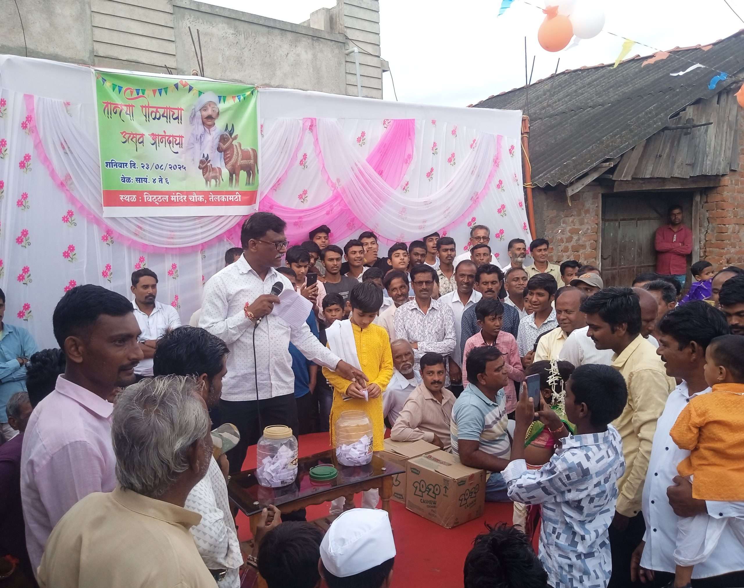 यावेळी मुलं मुली अशा दोन गटांमध्ये लहान मुलांच्या हस्ते हस्ते चिठ्ठी काढून बक्षीस वितरण करण्यात आले.यावेळी मुलीमध्ये प्रथम पूर्वी दिनेश बावणे तर मुलामध्ये प्रथम धीरज सुनील सोनबरसे,द्वितीय बक्षीस मुलीमध्ये चारवी अक्षय बागडे तर मुलामध्ये तन्वीत मुकेश सोनबावणे,तृतीय बक्षीस मुलीमध्ये कायरा कैकाडे तर मुलामध्ये जयंत जगदीश देशमुख,विशेष बक्षीस मुलीमध्ये अनुष्का किशोर मिरासे तर मुलामध्ये कुणाल गणेश वाडीकर याला देण्यात आले.