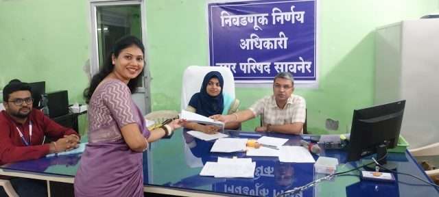 नगरपरिषद निवडणुकीच्या पार्श्वभूमीवर सावनेरमध्ये उमेदवारी दाखल करण्याची प्रक्रिया सुरू असून, विविध पक्षांच्या उमेदवारांकडून नामांकन दाखल करण्यास सुरुवात झाली आहे. त्याच अनुषंगाने आम आदमी पार्टीच्या नगराध्यक्ष पदाच्या उमेदवार सौ. अश्विनी पंकज घाटोडे यांनी आपले नामांकन दाखल केले. या वेळी विविध प्रभागांतील १५ कार्यकर्त्यांनीही उमेदवारी दाखल केली.